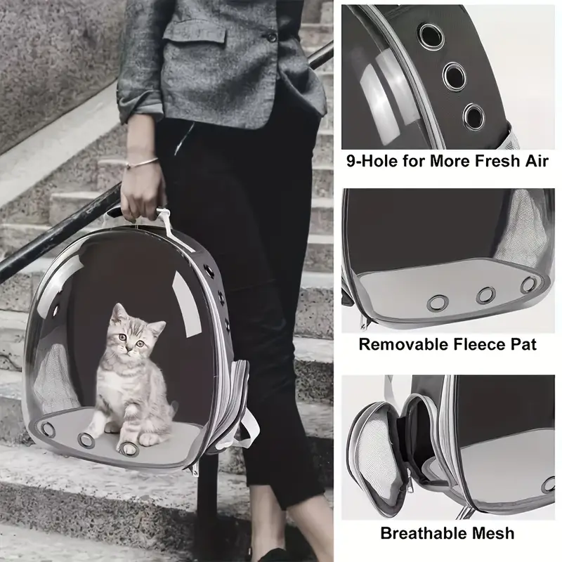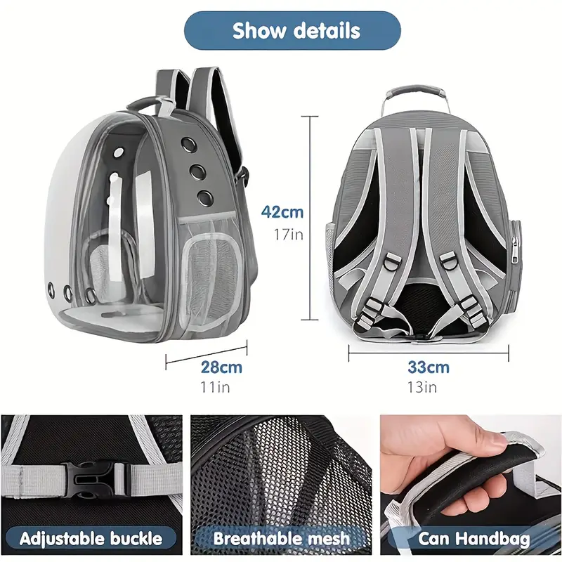 Let your pet explore the world in comfort and style with this Astronaut Bubble Backpack for Pets. Crafted with durable, breathable materials and a transparent front, it allows your furry friend to enjoy panoramic views while staying secure. The ergonomic straps and padded back ensure comfort for both wearer and pet. Ideal for travel, walks, or adventure outings with small dogs or cats, this carrier combines functionality with futuristic design. Easy to clean and lightweight, it’s the perfect companion for pet owners on the move. Take your pet safely into the great outdoors — in style
